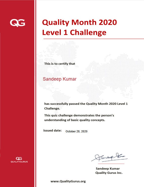Many companies celebrate the month of November as Quality Month. The main purpose behind this celebration to raise the level of quality awareness in the company and to recognize the efforts and contributions of quality professionals.
